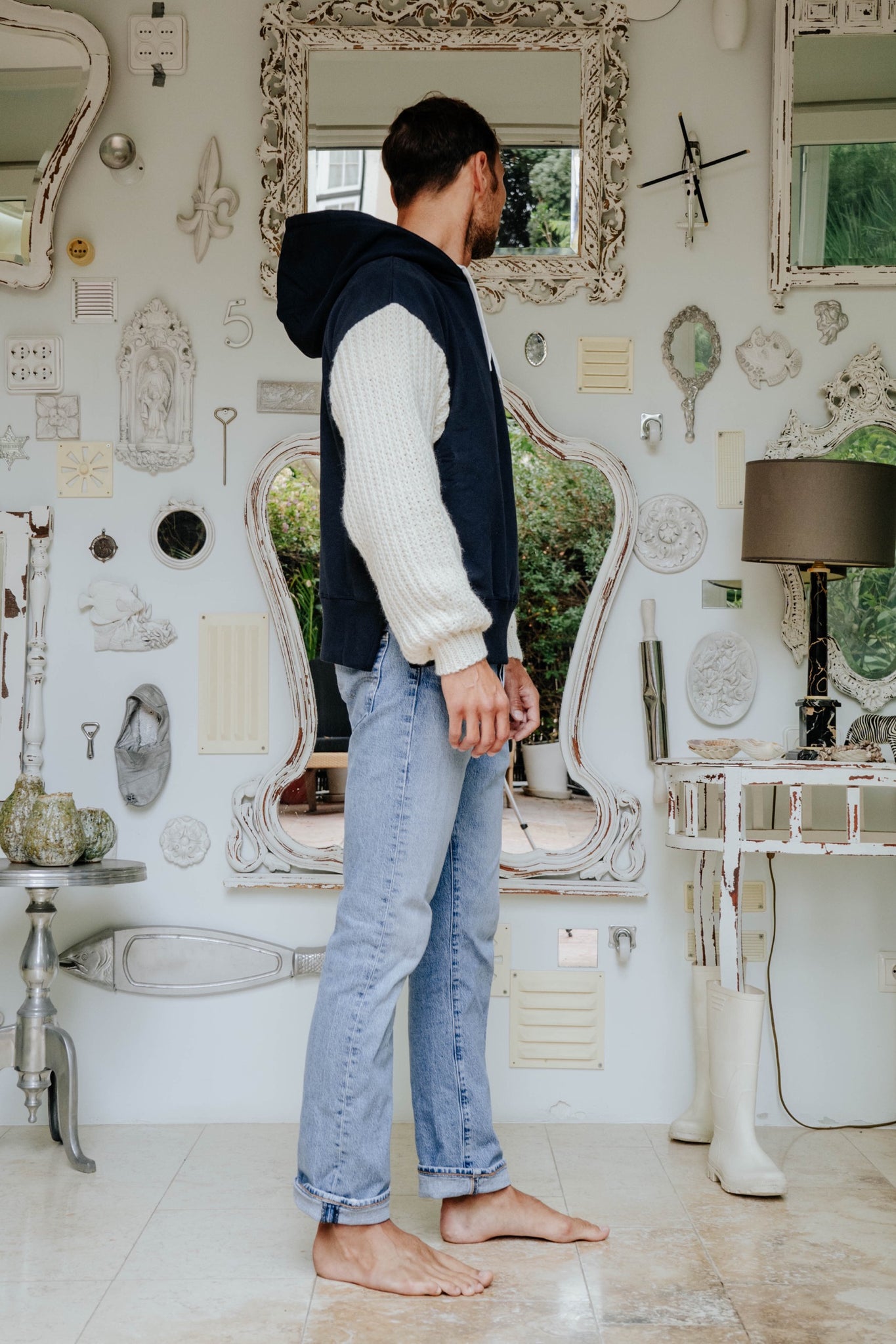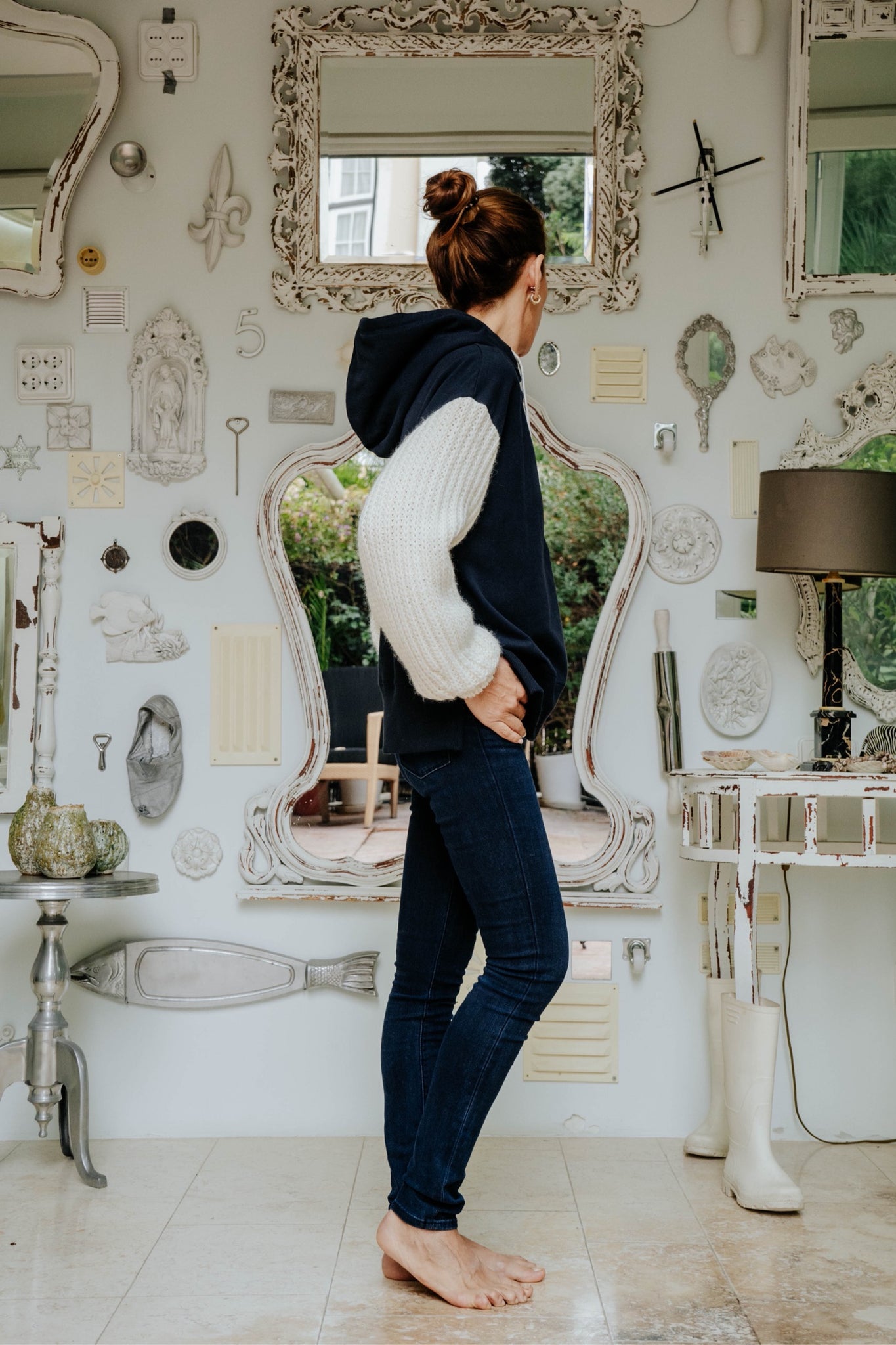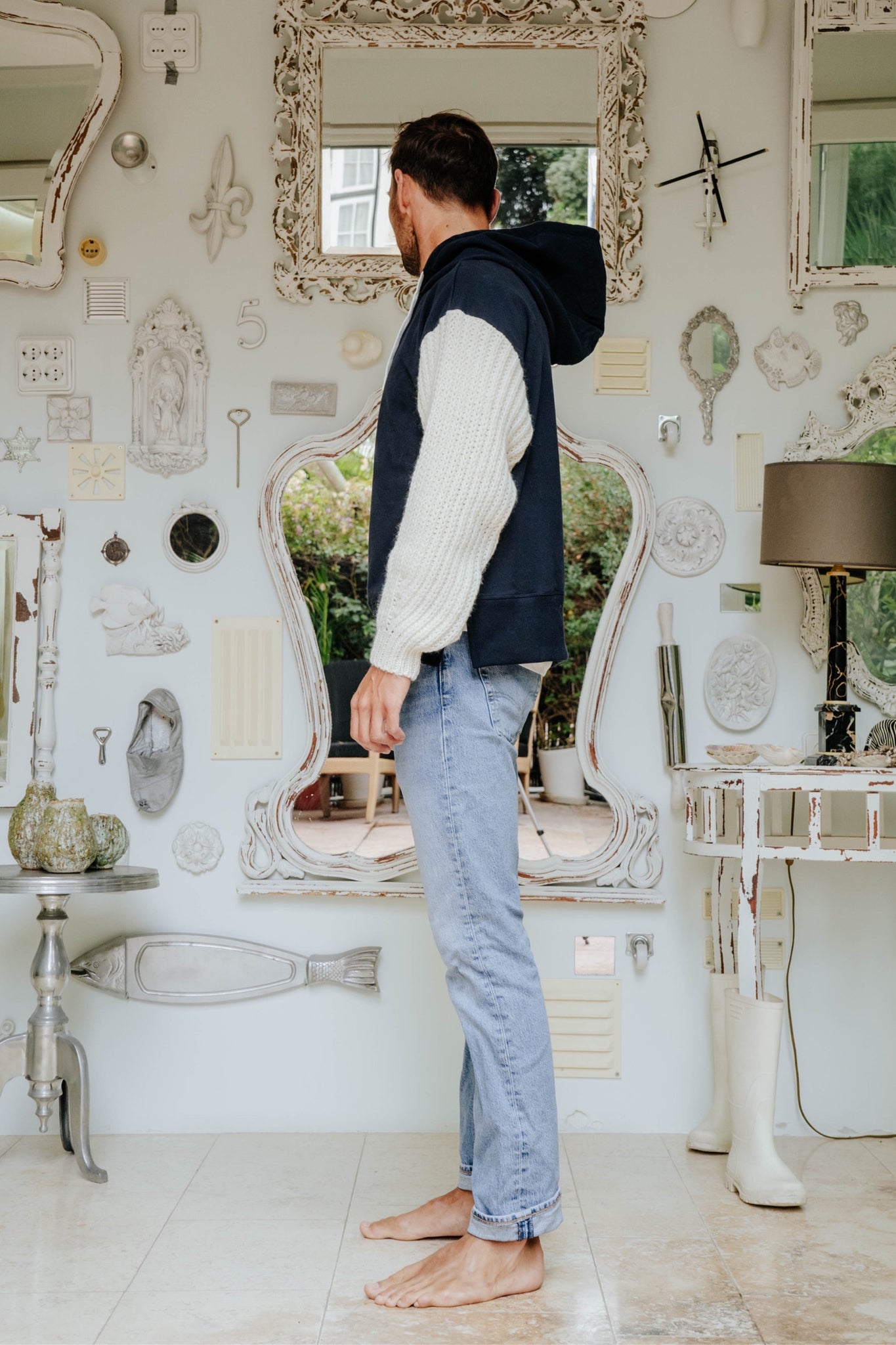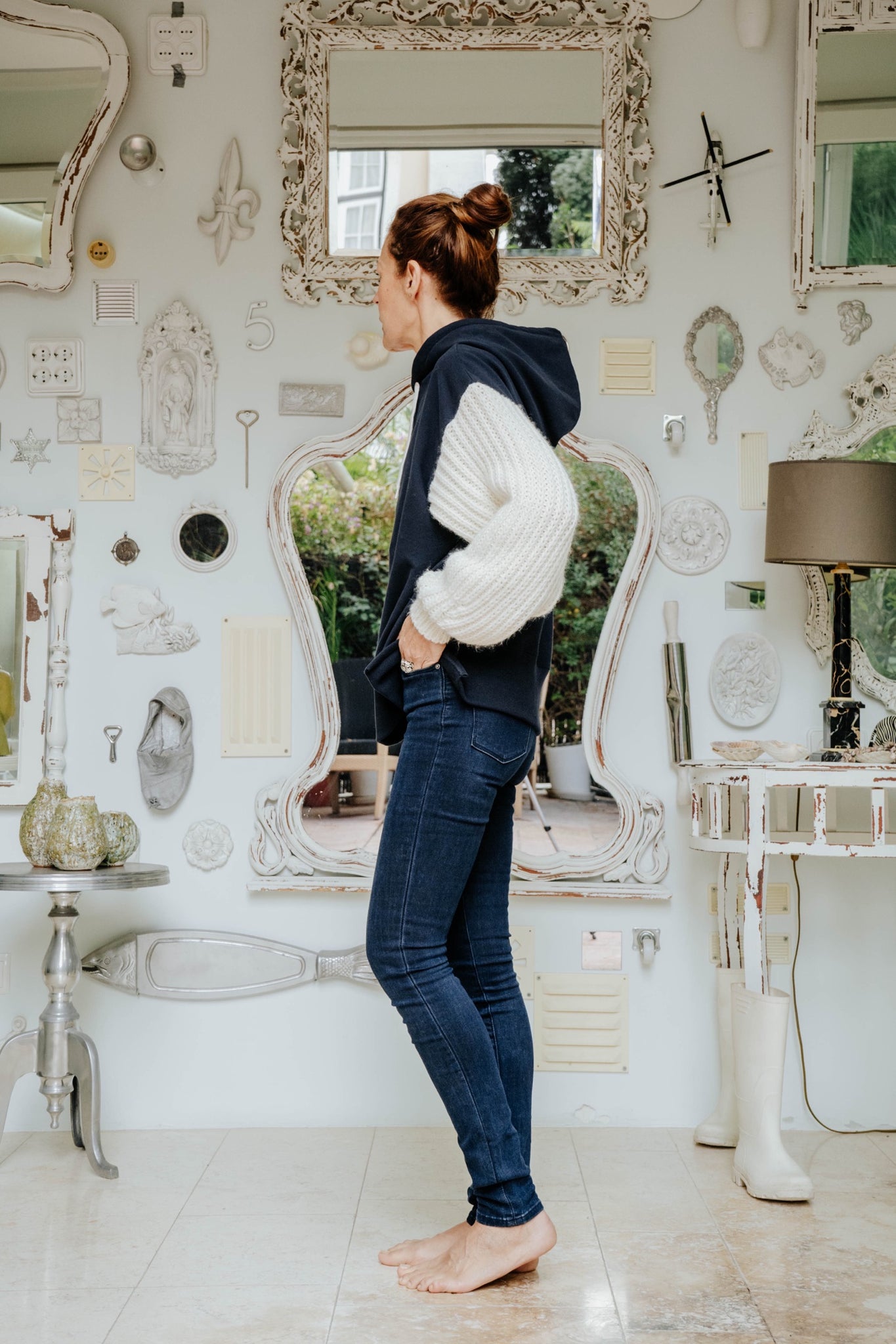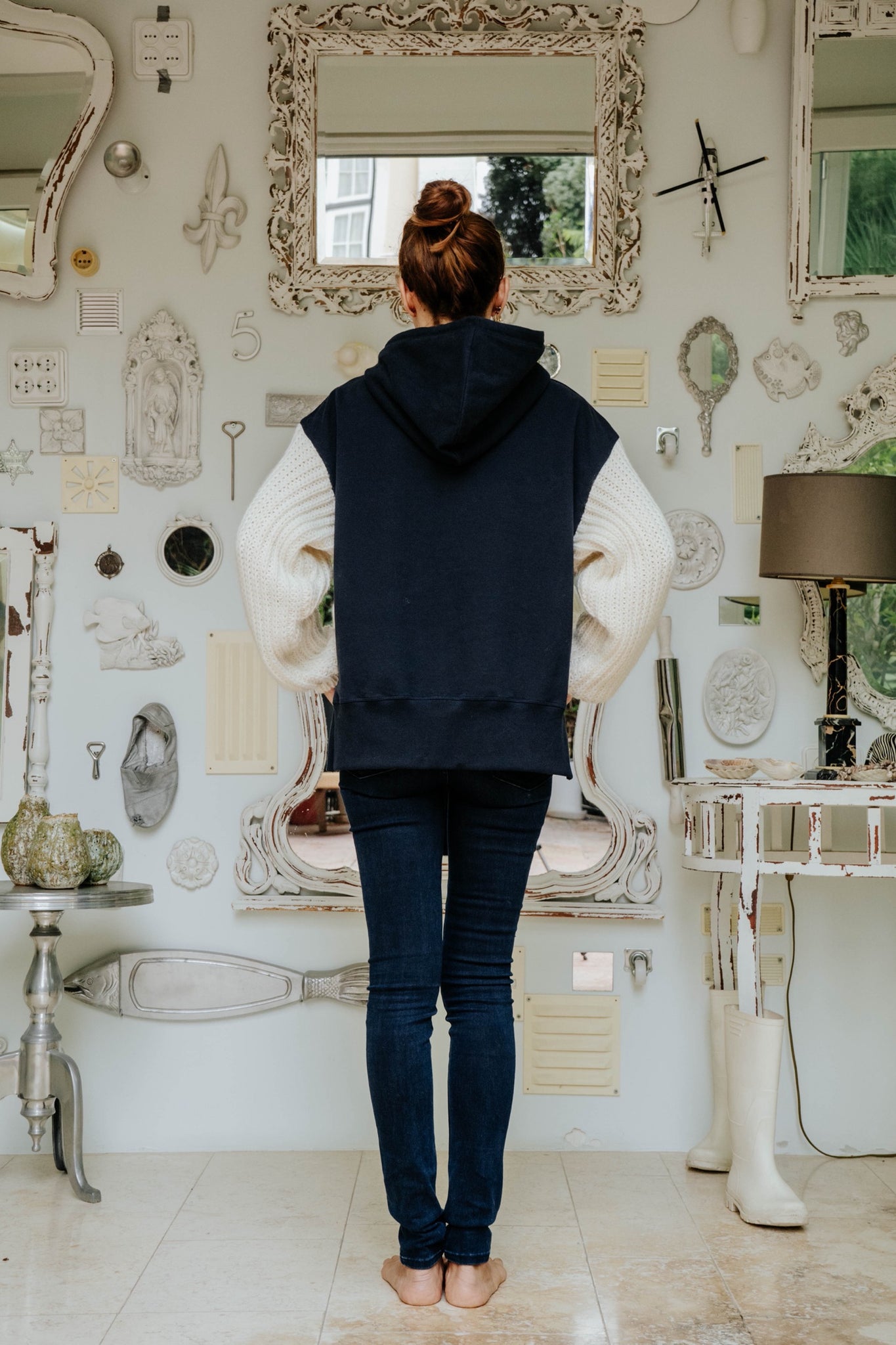 Sleeves are in yarn in 70% acrylic and 30% wool.
